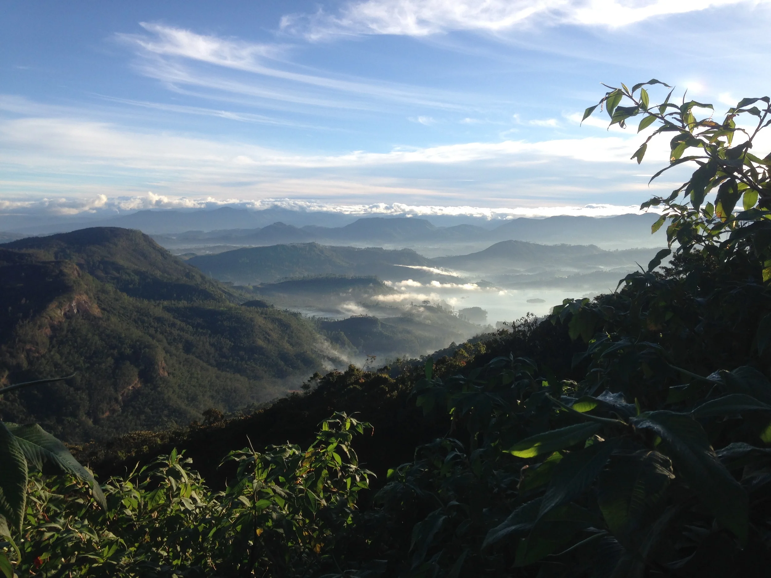 Leaving the south, Sam and I traveled to Ella, Horton’s Plains, and Delhousie (the village close to Adam’s Peak). Around every curve of the train tracks, the vista would open into a beautiful view. The rolling hills were covered with tea plants and down in the valleys were small farms of the villagers. Sitting with either my head out the window or in the doorway of the train, I attempted to soak in as much of the pure green landscape as I could.